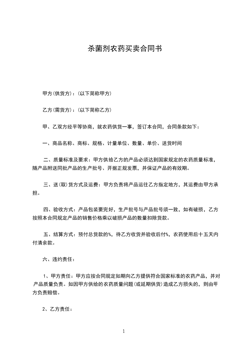 甲、乙双方经平等协商,就农药供货一事,签订本合同,合同条款如下: