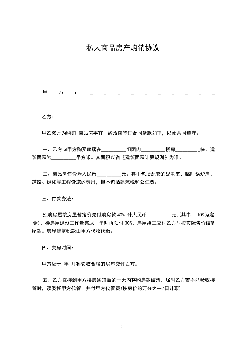 一、乙方向甲方购买座落在__________组团内__________楼房__________栋。建筑面积为__________平方米。其面积以省《建筑面积计算规则》为准。