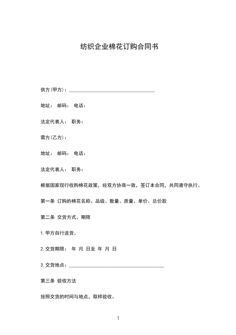 根据国家现行收购棉花政策,经双方协商一致,签订本合同,共同遵守执行。