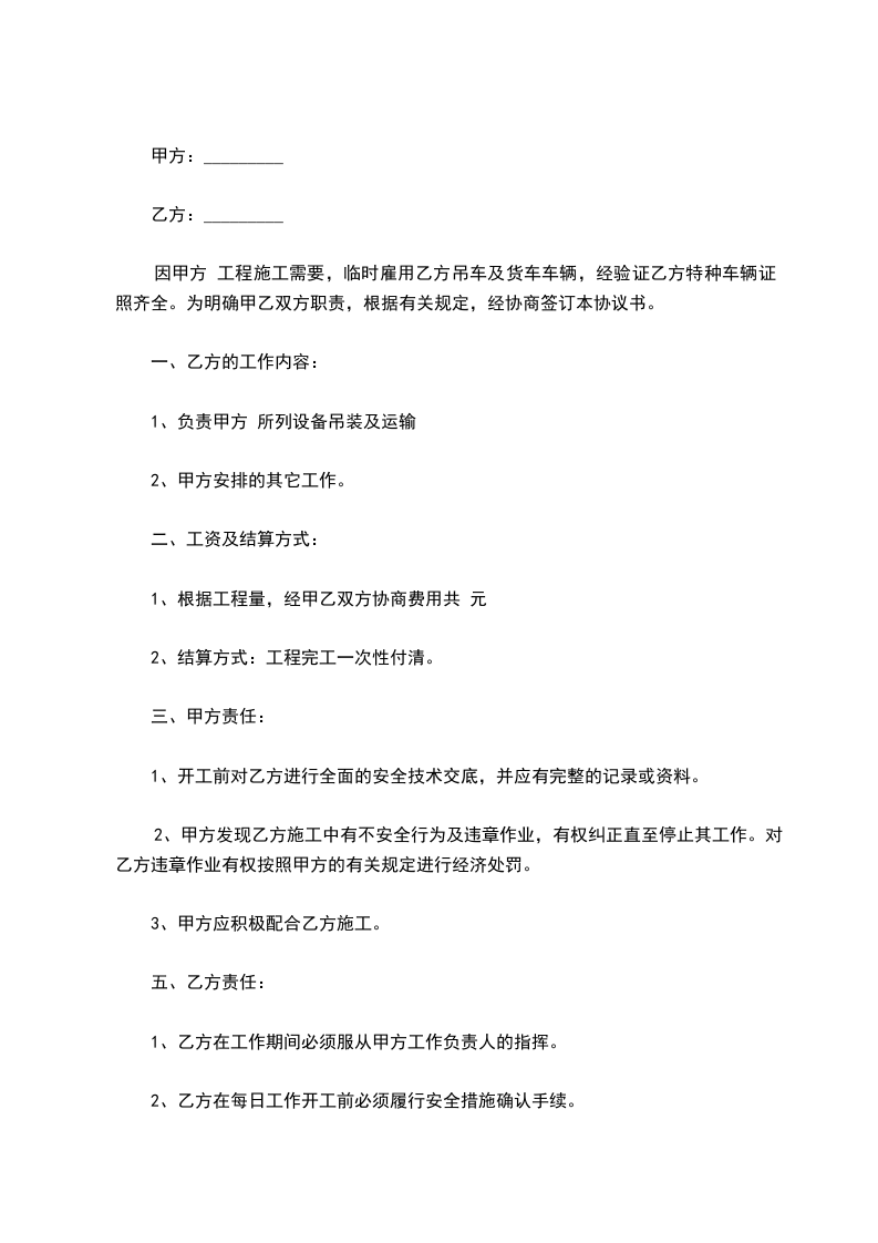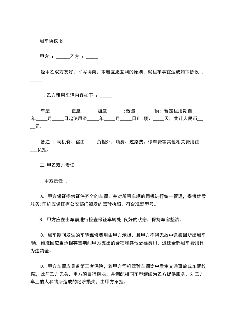 四、 租赁方式:租用驾驶员本人,车辆1辆,随时随地有监理项目部调配使用,夜间加班等一系列工作,汽油由甲方费用由甲方负责。