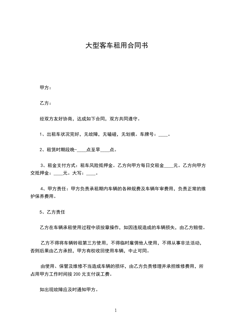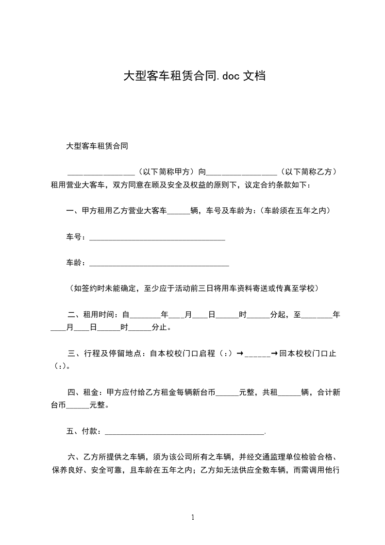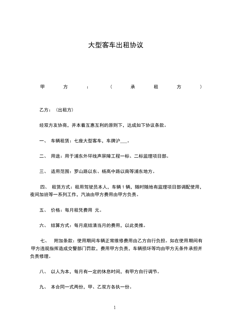 一、 车辆租赁:七座大型客车,车牌沪___。
