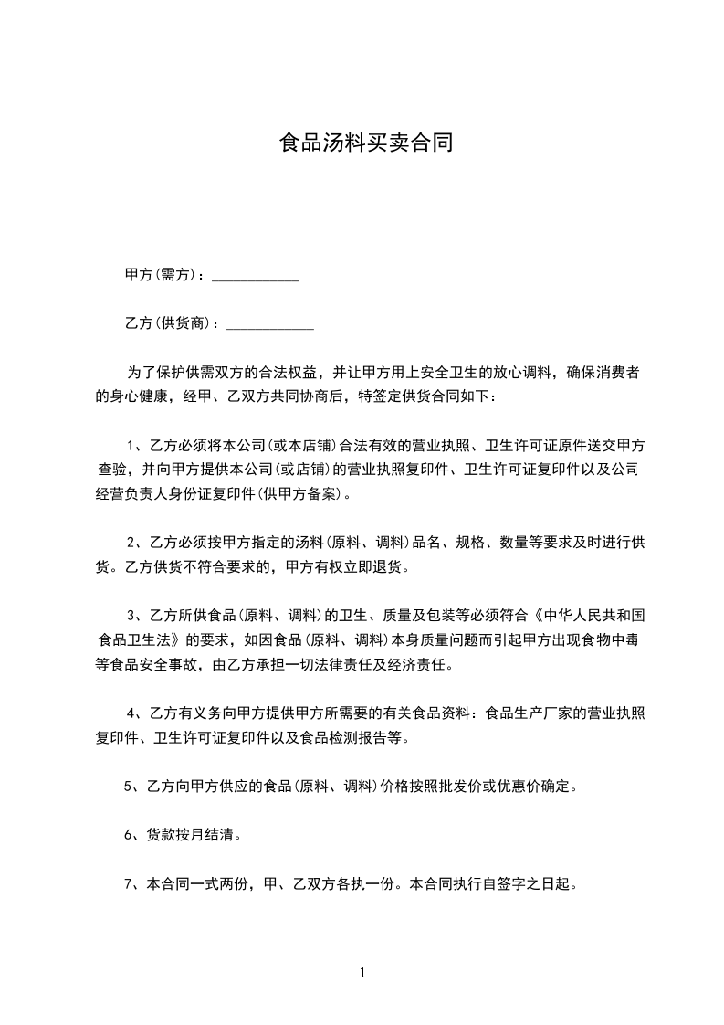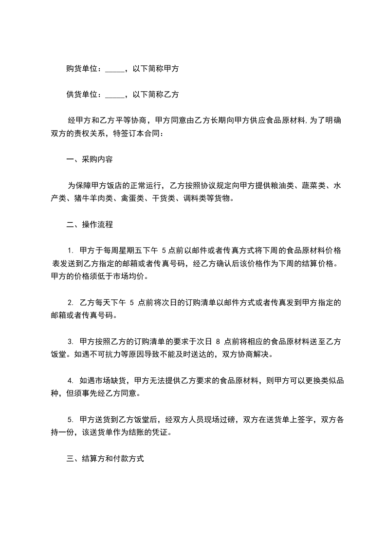 2、甲方视成本及市场原材料变化有权更改供应价格,但应提前一个月通知乙方。