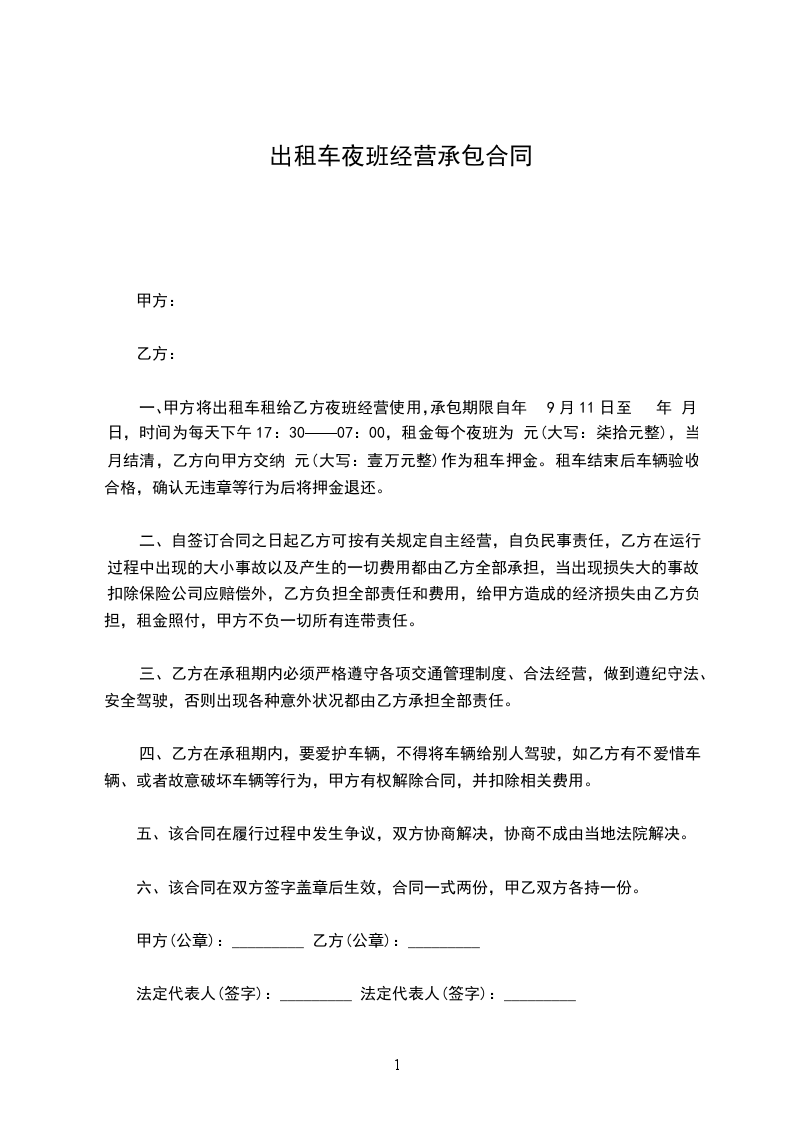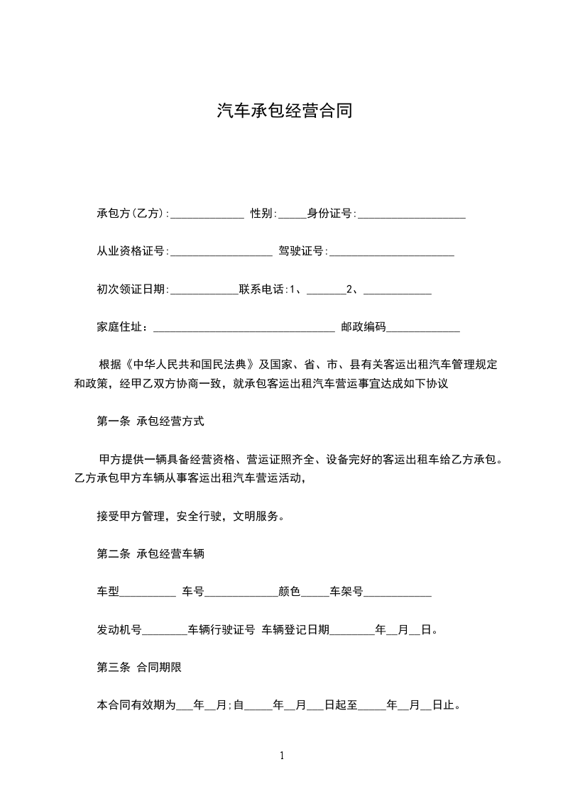 二、承包期为8年,从_____年_____月_____日至_____年_____月_____日止,车辆及运营线路交由承包人经营。