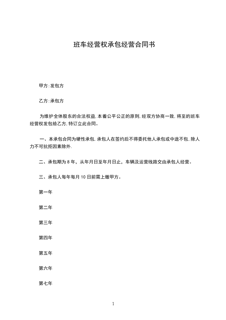 为维护全体股东的合法权益,本着公平公正的原则,经双方协商一致,将至的班车经营权发包给乙方,特订立此合同。