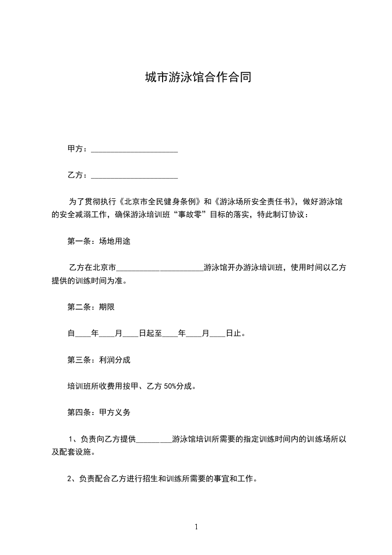 为了贯彻执行《北京市全民健身条例》和《游泳场所安全责任书》,做好游泳馆的安全减溺工作,确保游泳培训班“事故零”目标的落实,特此制订协议: