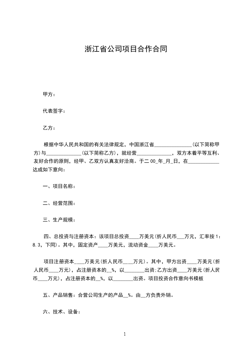 根据中华人民共和国的有关法律规定,中国浙江省_______________(以下简称甲方)与______________(以下简称乙方),就经营______________,双方本着平等互利、友好合作的原则,经甲、乙双方认真友好洽商。于二00_年_月_日,在_____________达成如下意向: