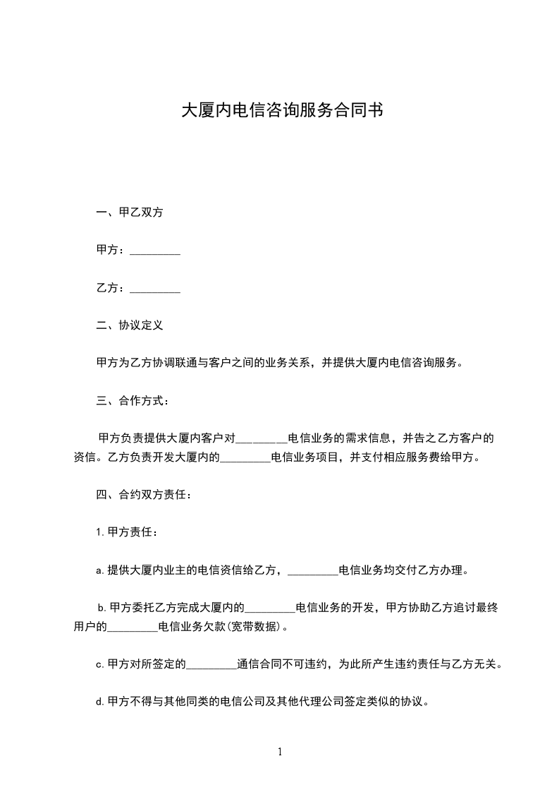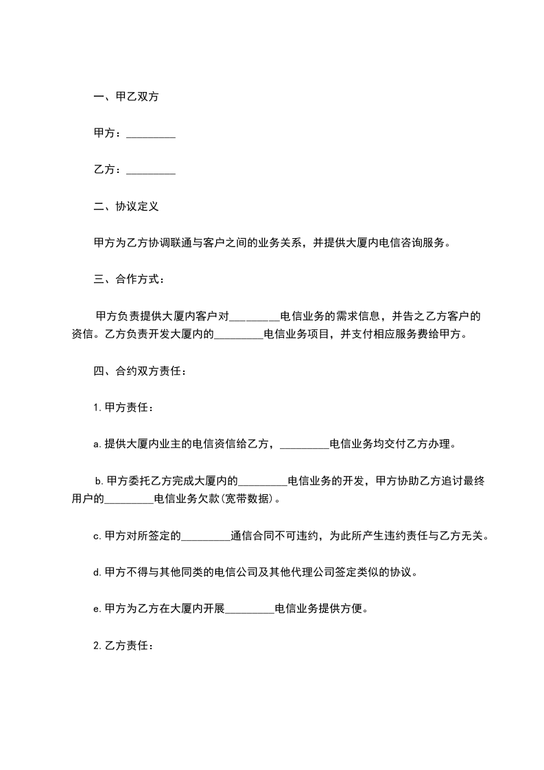 甲方为乙方协调联通与客户之间的业务关系,并提供大厦内电信咨询服务。
