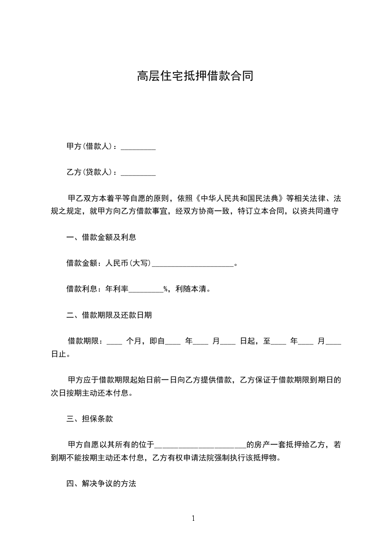 甲方(出借人、抵押权人): 身份证号码: