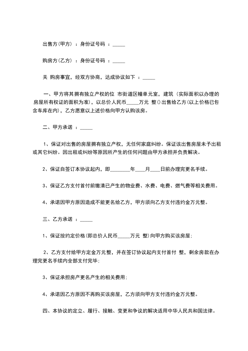 买方:_______________(简称乙方) 身份证号码:_____________________