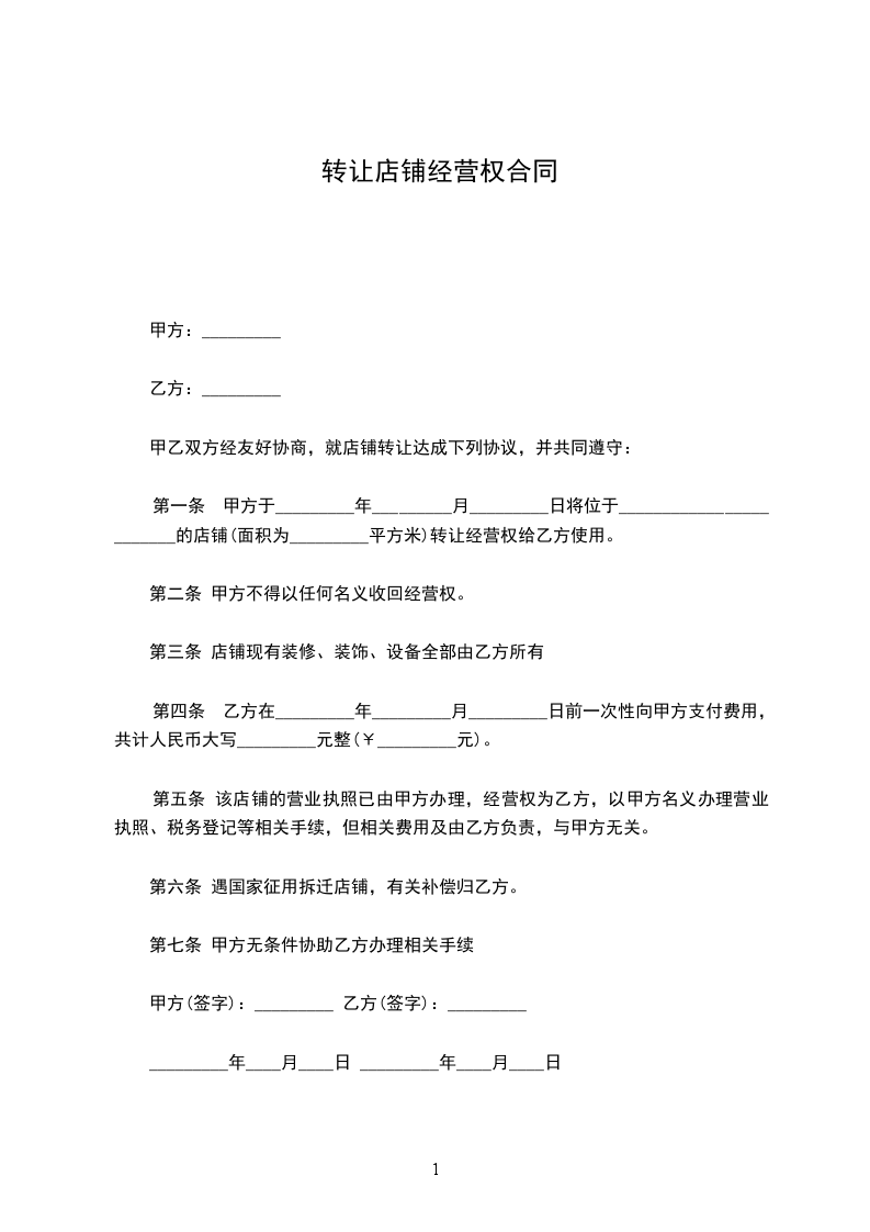 1、无特殊情况,乙方不准转营、转兑商铺。