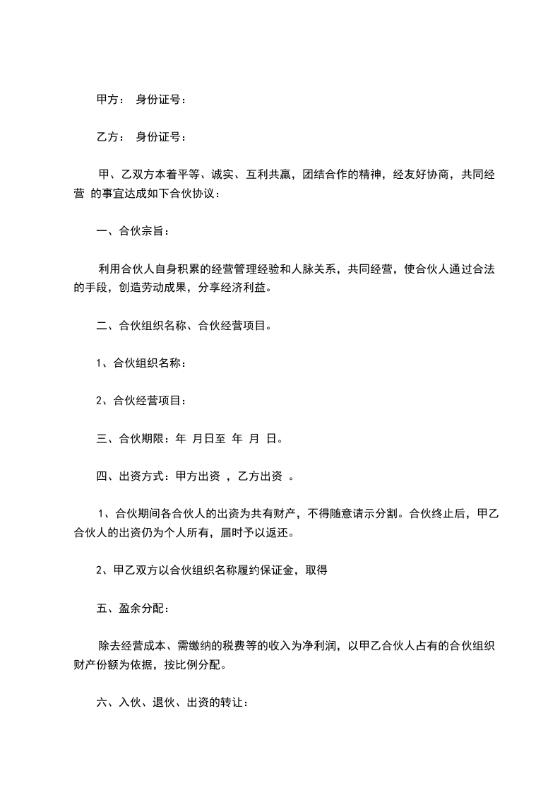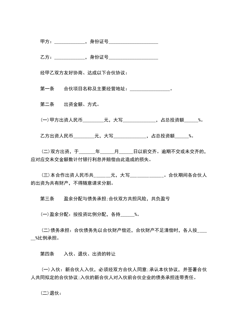 十二、此合同对合伙组织经经营的每一个项目均有效力。