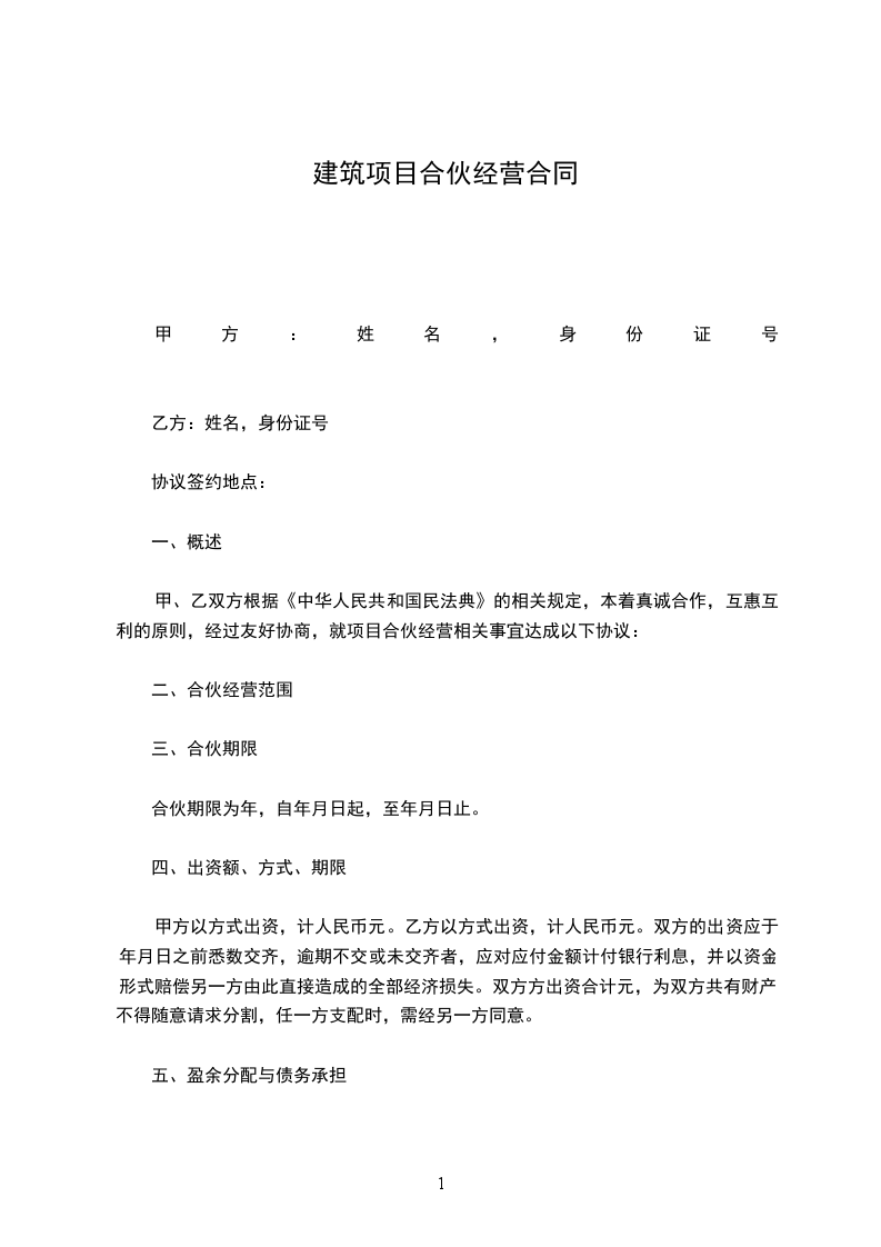 三方合伙经营期限暂定为四年,从_____年_____月_____日起至_____年_____月_____日止,暂定合伙期限届满时,如已经营项目尚未完结,合伙期限顺延,至该项目完结后。如暂定合伙期限届满且已经营项目已完结,又承接新的经营项目,各方同意继续执行本合同,直到该新接经营项目完结后,合伙清算结束至。