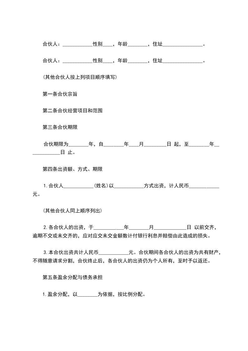 五、合伙经营期限