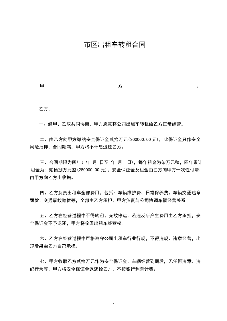 四、 乙方在 年 月 日前一次性向甲方支付顶手费(转让费)共计人民币大写 元,上述费用已包括甲方交给丙方再转付乙方的押金、第三条所述的装修装饰设备及其他相关费用。甲方不得再向乙方索取任何其他费用。