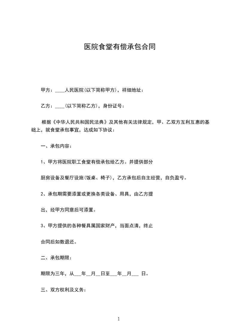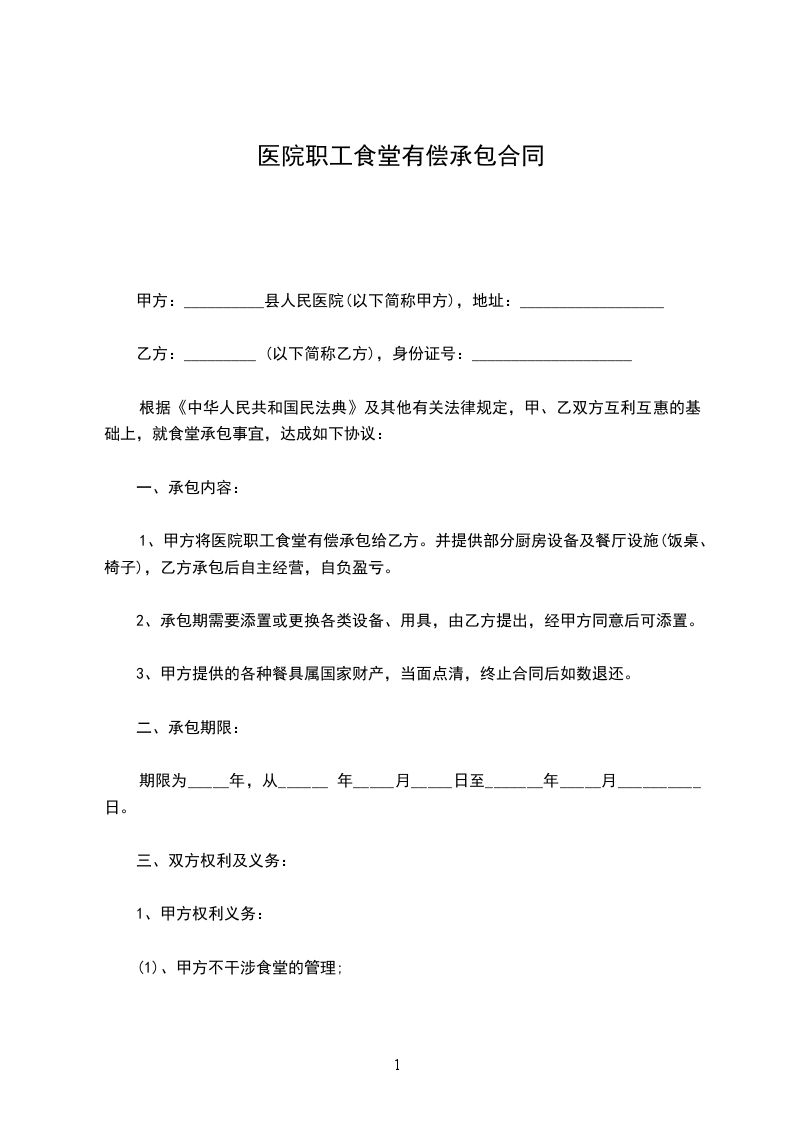 1、甲方将医院职工食堂有偿承包给乙方。并提供部分
