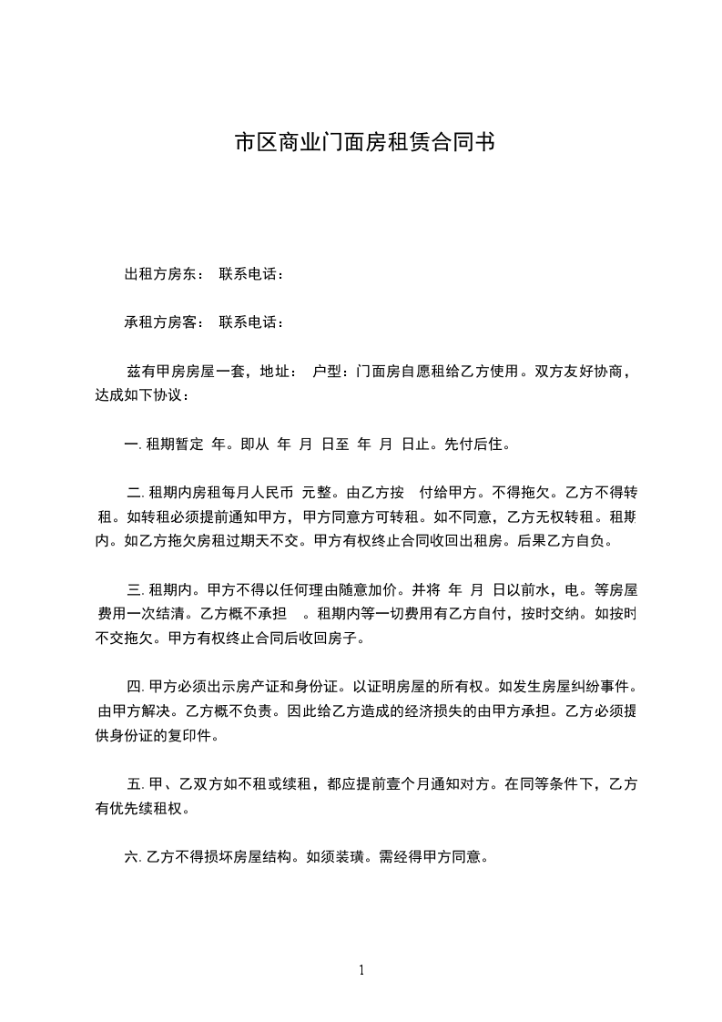 一.租期暂定 年。即从 年 月 日至 年 月 日止。先付后住。