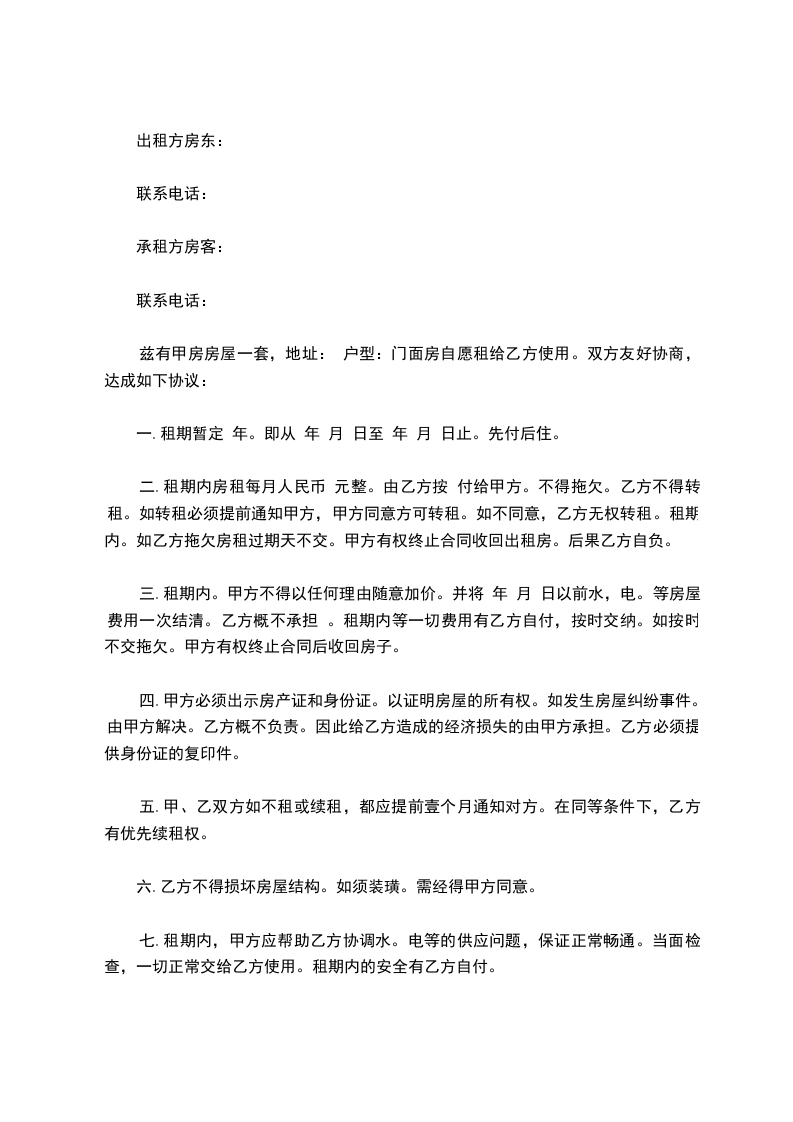 一.租期暂定 年。即从 年 月 日至 年 月 日止。先付后住。