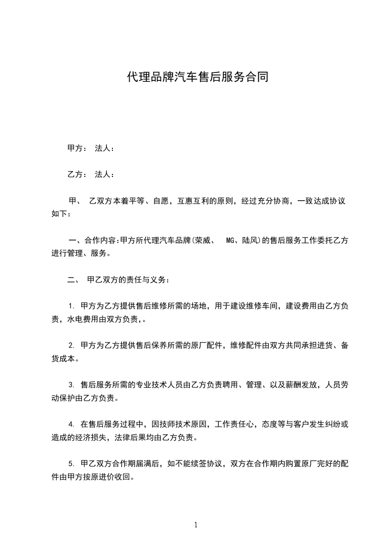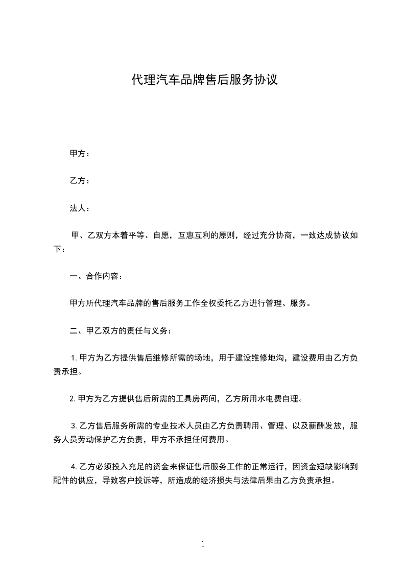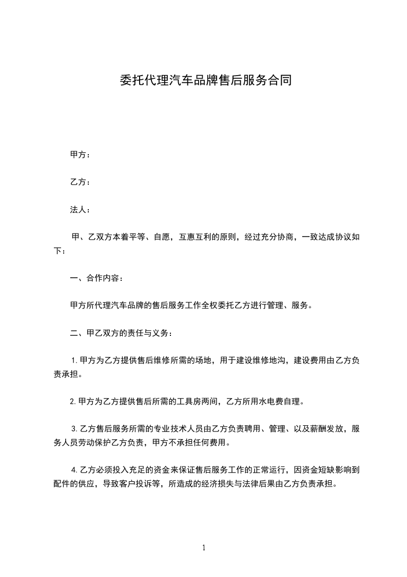 甲方所代理汽车品牌的售后服务工作全权委托乙方进行管理、服务。