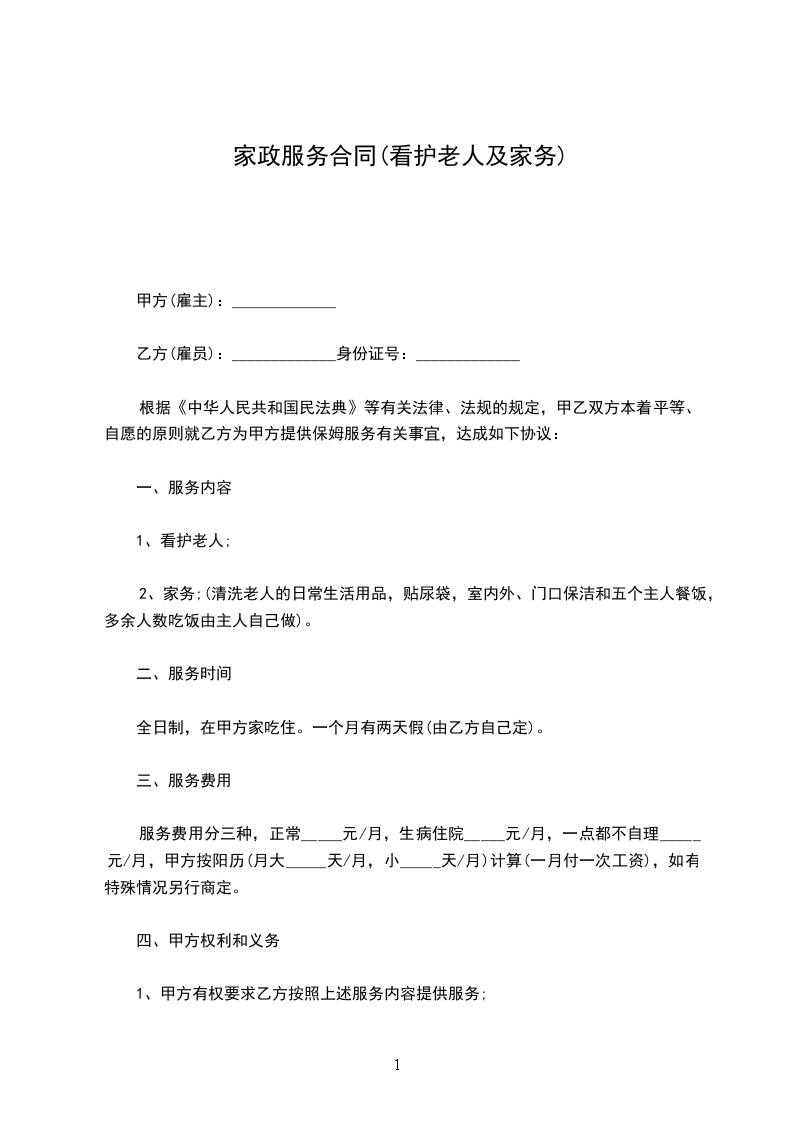 九、用户(乙方)需家政服务员工作,并以月工资结算,应同意每周不少于休息一天,如遇法定假日(春节三天,元旦节一天,五一节一天,国庆节一天)休息,工资照付。