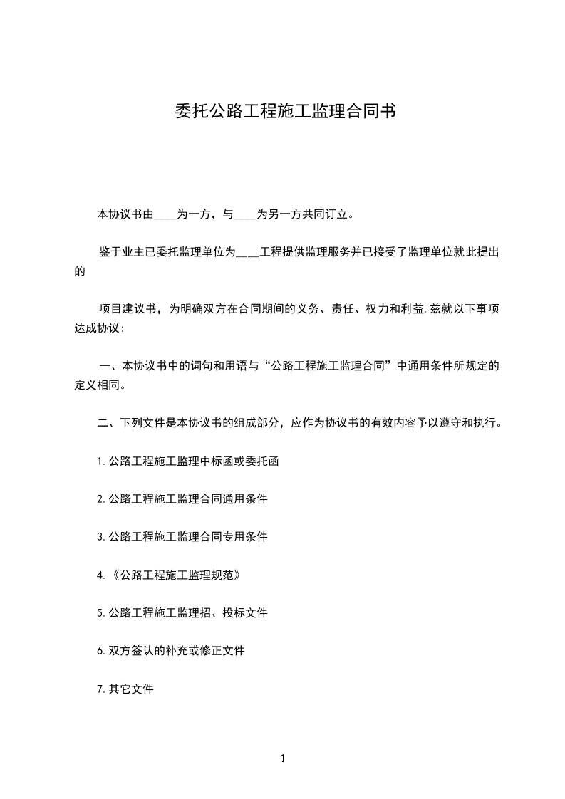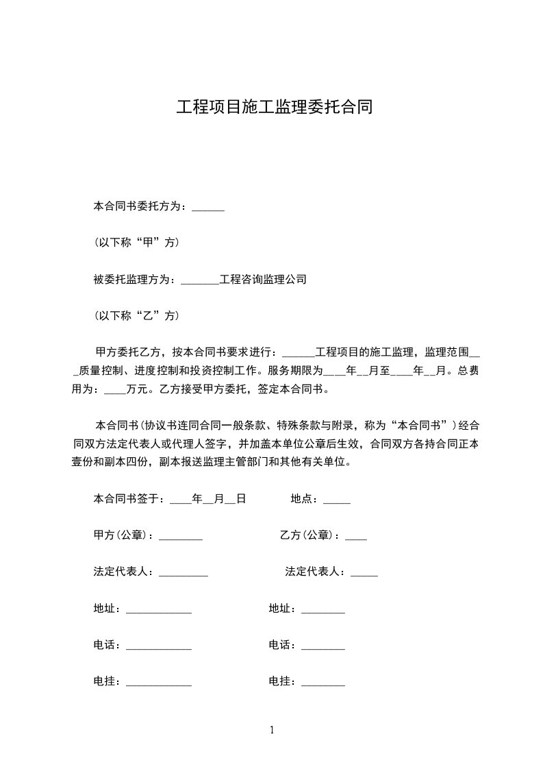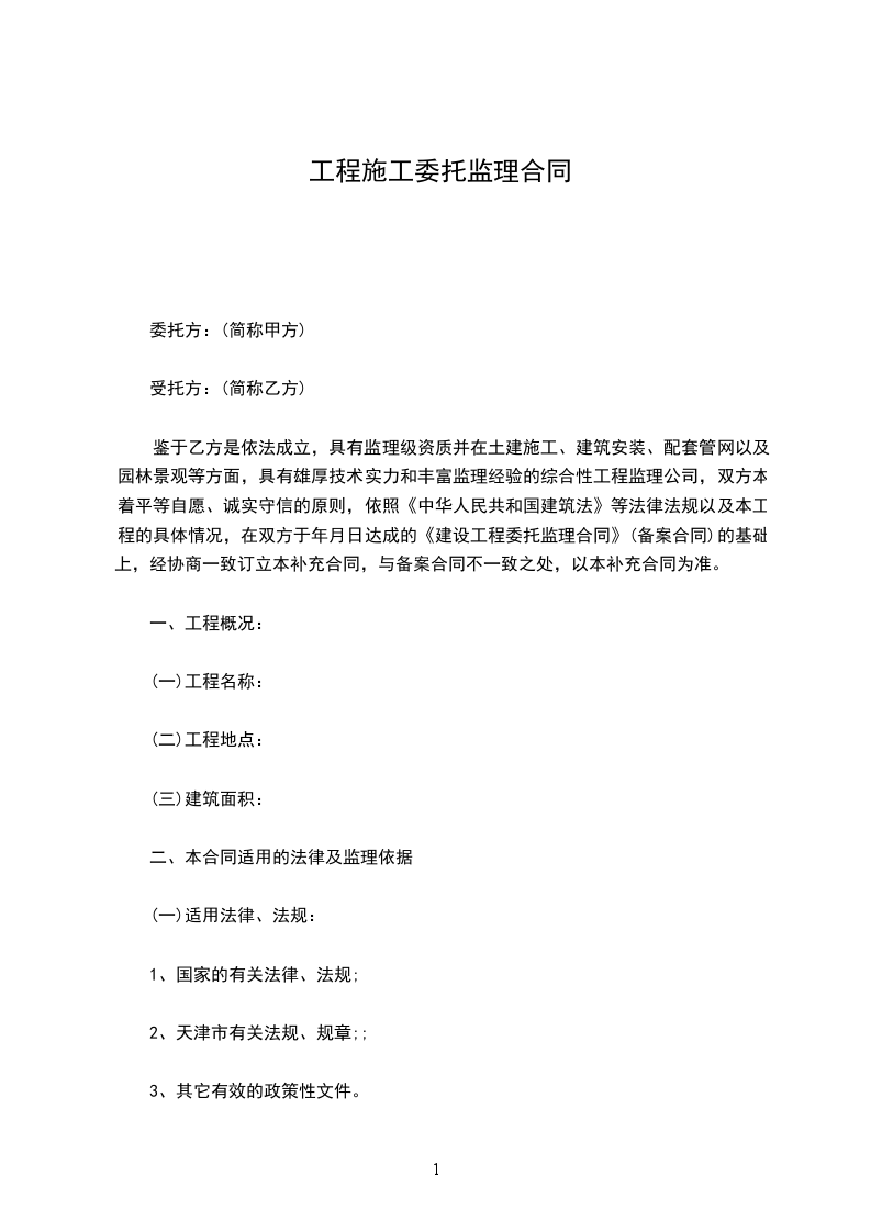 委托人_______________与监理人_______________ 经双方协商一致,签订本合同。