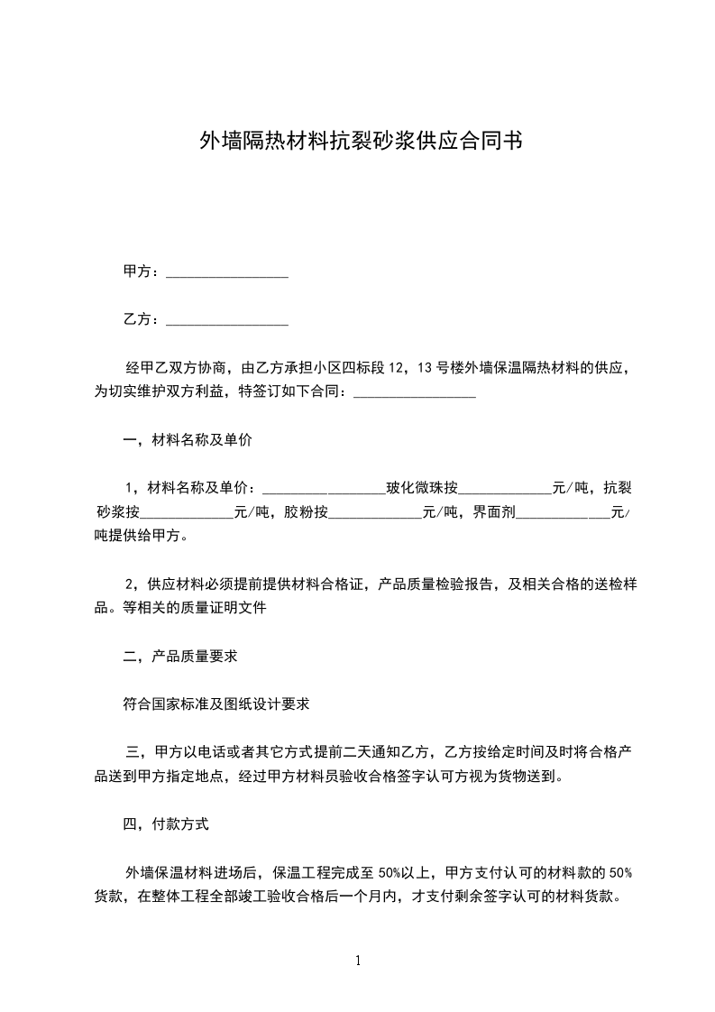 1,材料名称及单价:_________________玻化微珠按_____________元/吨,抗裂砂浆按_____________元/吨,胶粉按_____________元/吨,界面剂_____________元/吨提供给甲方。