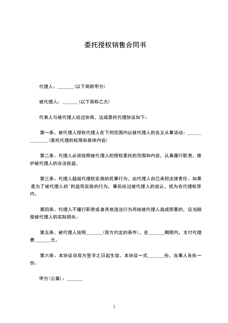 第一条、被代理人授权代理人在下列范围内以被代理人的名义从事活动:______________(委托代理的权限和具体内容)