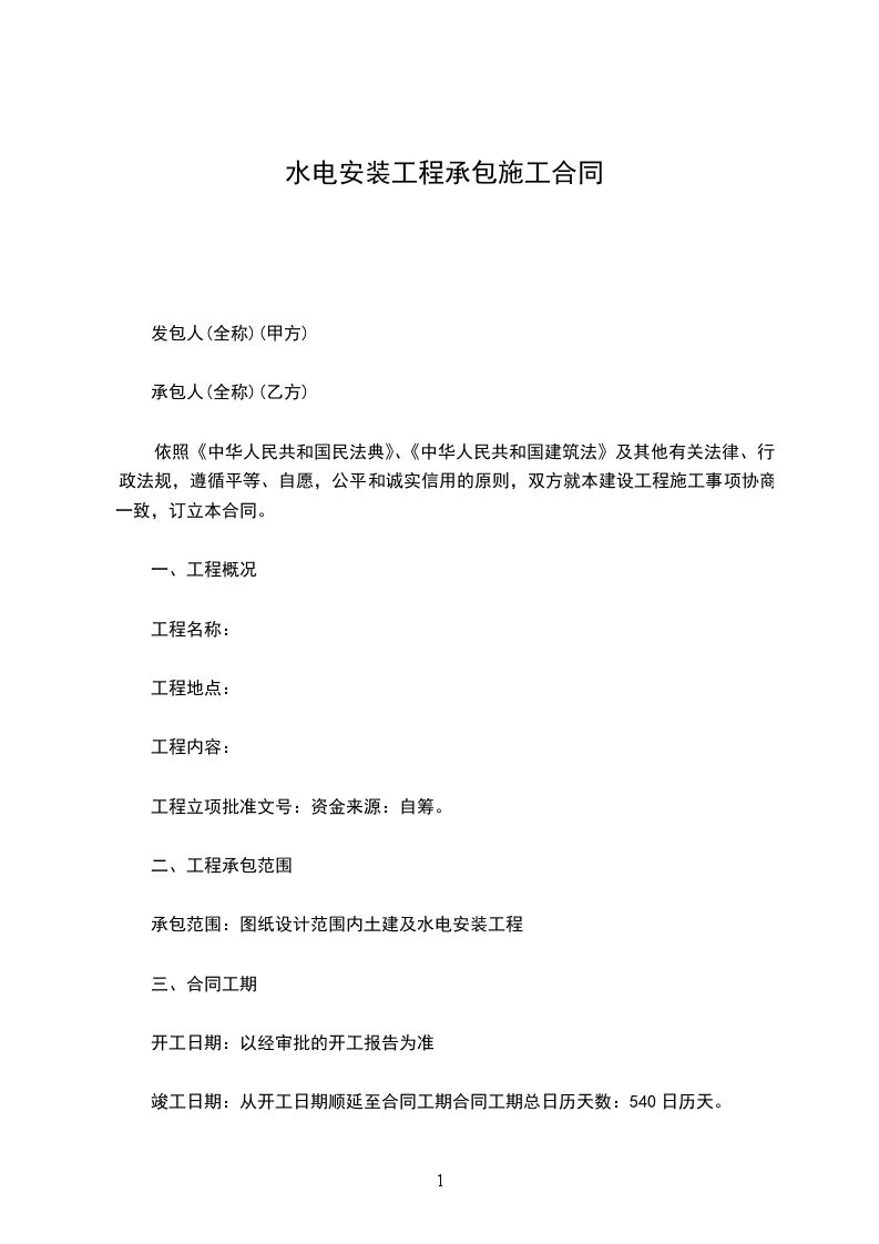 承包范围:图纸设计范围内土建及水电安装工程