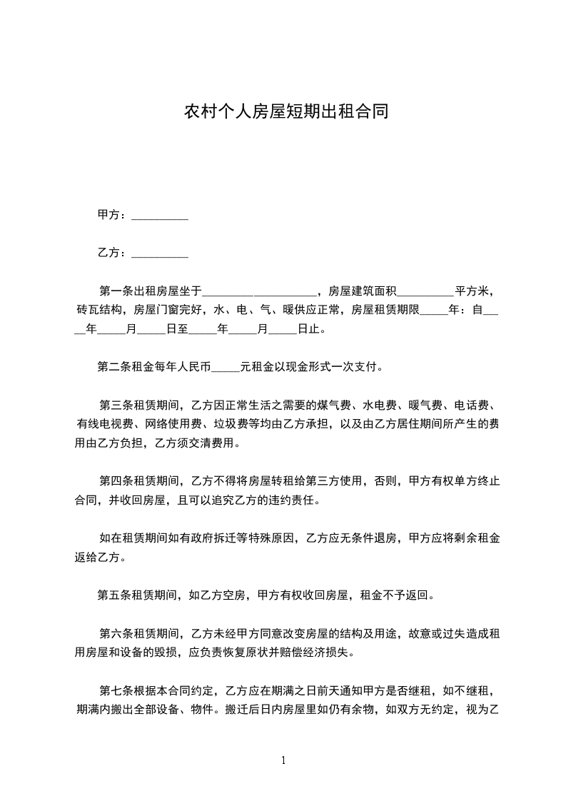 第二条 租赁期共 个月,甲方从 年 月 日起将出租房屋交付乙方使用,至 年 月 日收回。