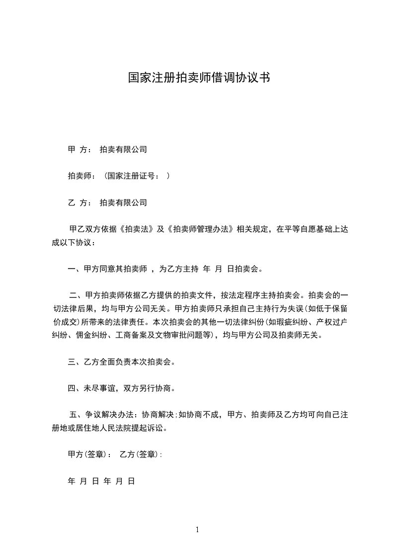 一、甲方同意其拍卖师 ,为乙方主持 年 月 日拍卖会。