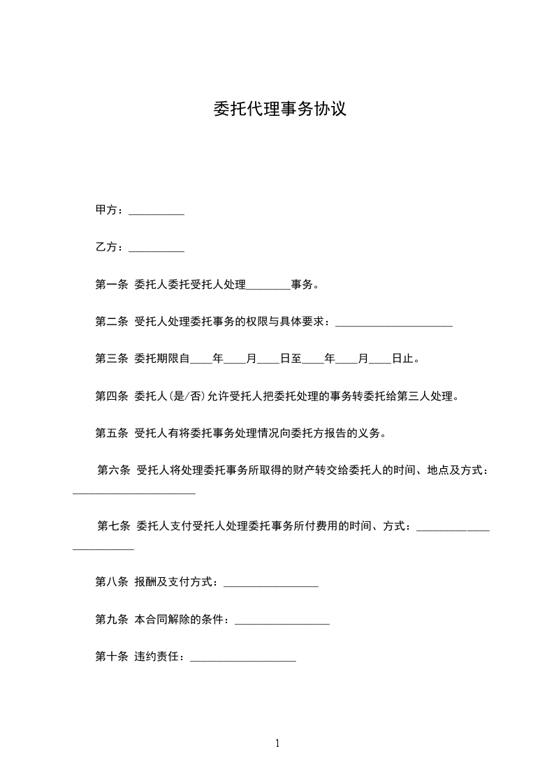第一条 委托人委托受托人处理________事务。