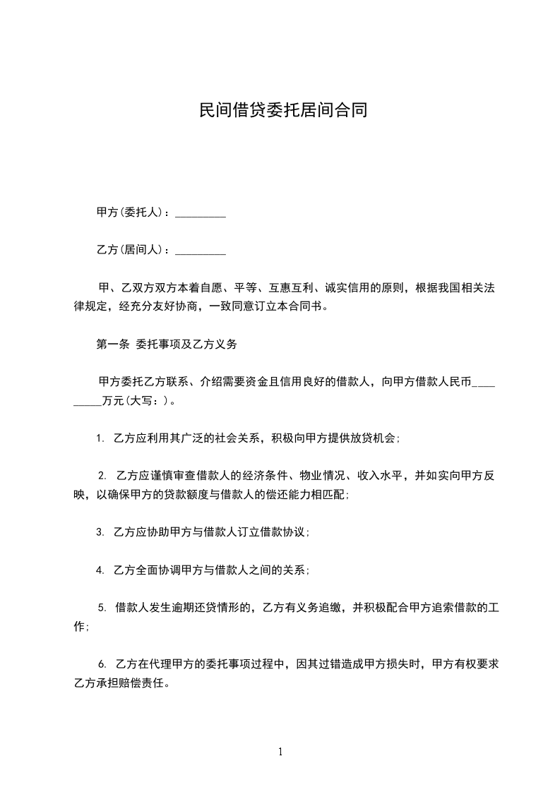甲方委托乙方联系、介绍需要资金且信用良好的借款人,向甲方借款人民币_________万元(大写:)。