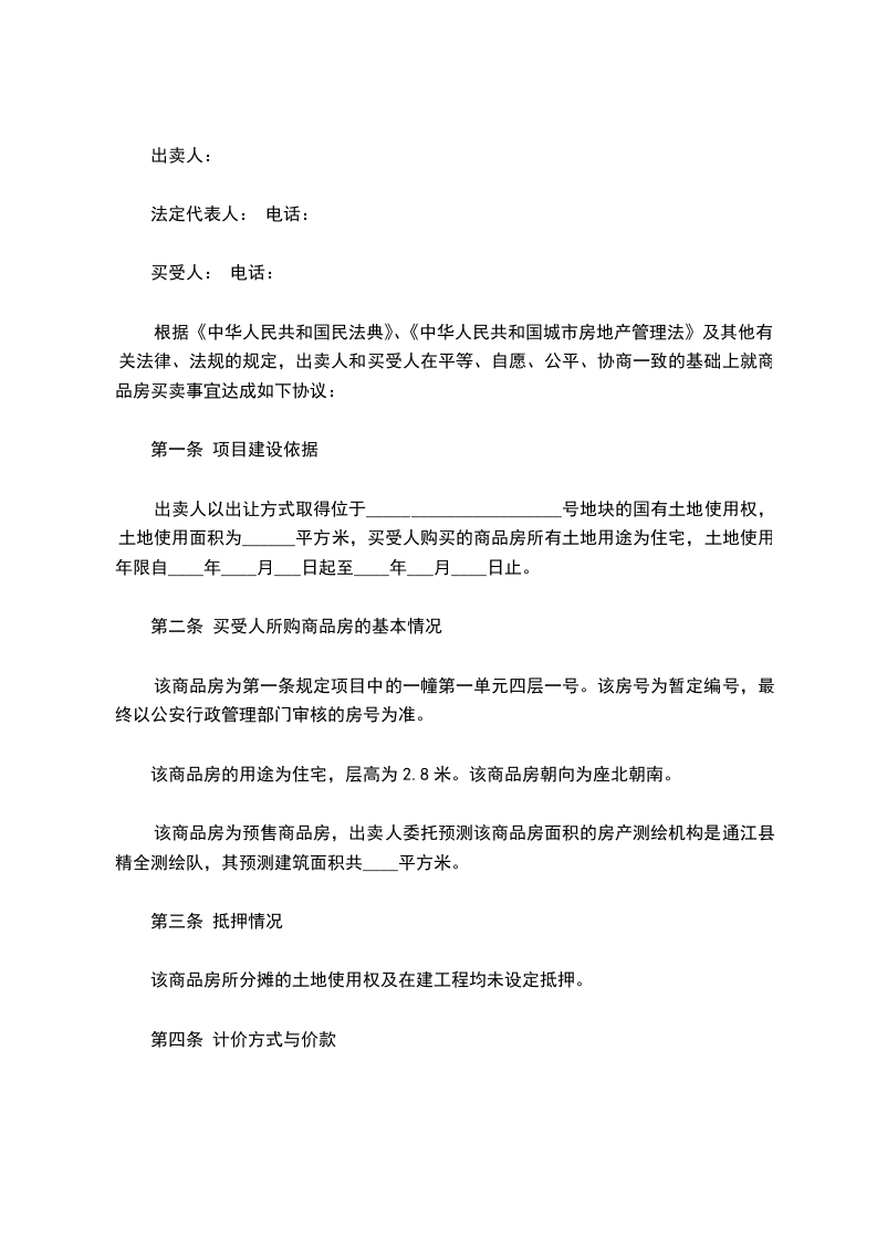 根据《中华人民共和国民法典》、《中华人民共和国城市房地产管理法》及其他有关法律、法规的规定,出卖人和买受人在平等、自愿、公平、协商一致的基础上就商品房买卖事宜达成如下协议: