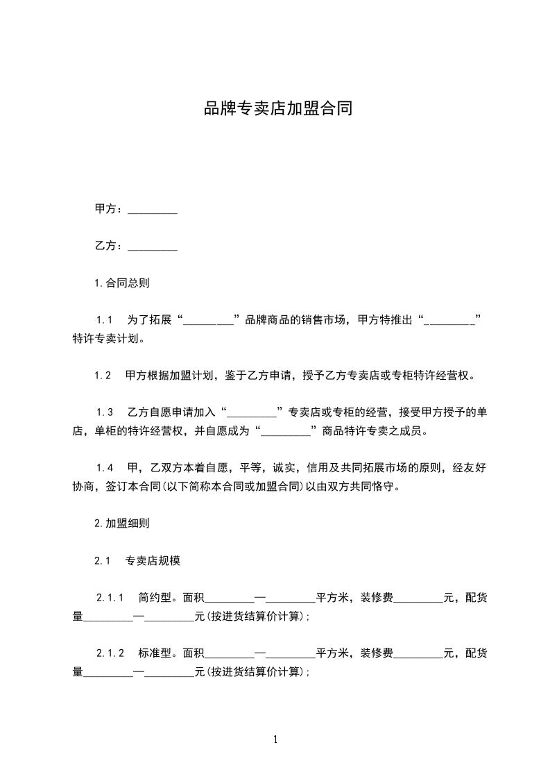 1.1 为了拓展“_________”品牌商品的销售市场,甲方特推出“_________”特许专卖计划。