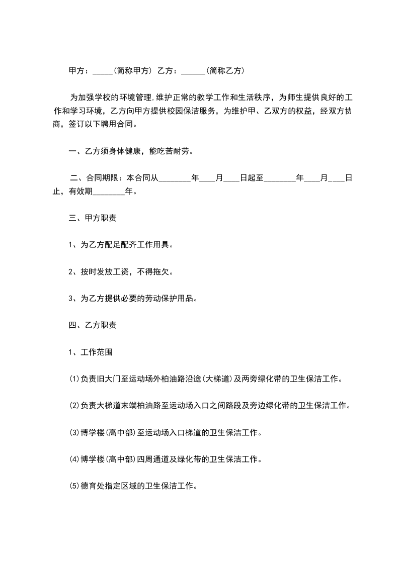 2、对校园保洁要求