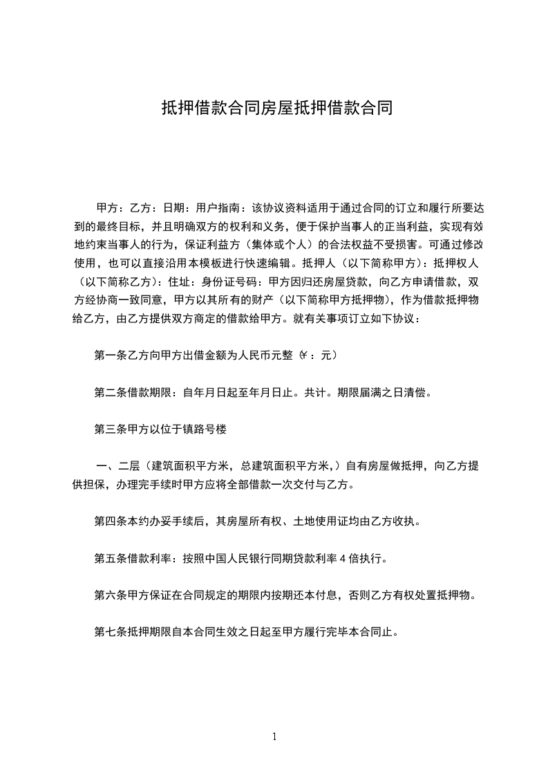 兹因甲方为担保乙方对于_______号借款合同项下所有的债权,将由甲方提供抵押物,为乙方设定抵押权,并约定条款如下: