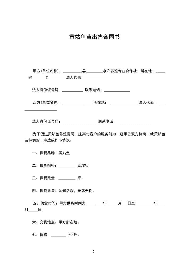 为了促进黄姑鱼养殖发展,提高对客户的服务能力,经甲乙双方协商,就黄姑鱼苗种供货一事达成如下协议: