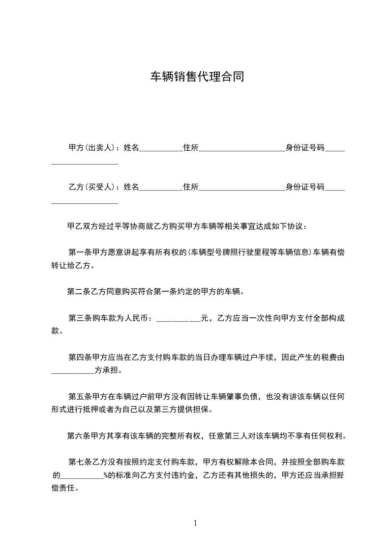 由于业务发展需要,经甲方和乙方友好协商,签定以下车辆代销协议,协议具体如下: