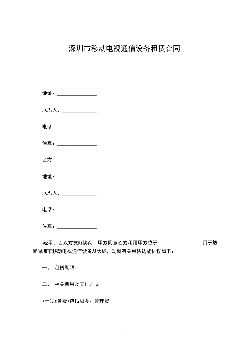 经甲、乙双方友好协商,甲方同意乙方租用甲方位于__________________用于放置深圳市移动电视通信设备及天线,现就有关租赁达成协议如下: