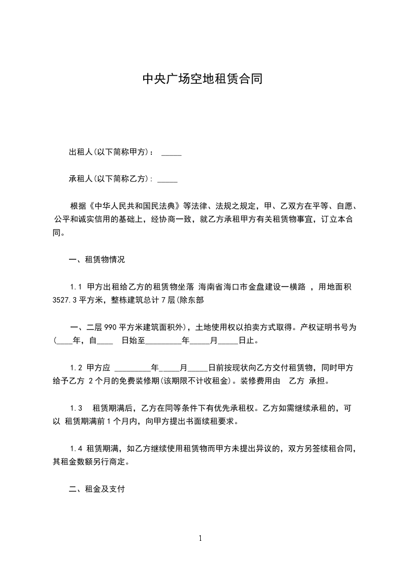 第一条租赁场地