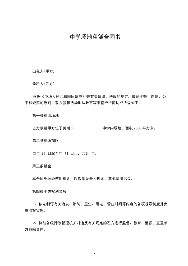 乙方承租甲方位于吴川市_______________中学内场地,面积7000平方米。