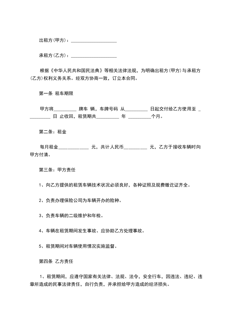 2、租赁期间应严格遵守国家各项法律法规,并承担由于违章、肇事、违法等行为所产生的全部责任及经济损失。