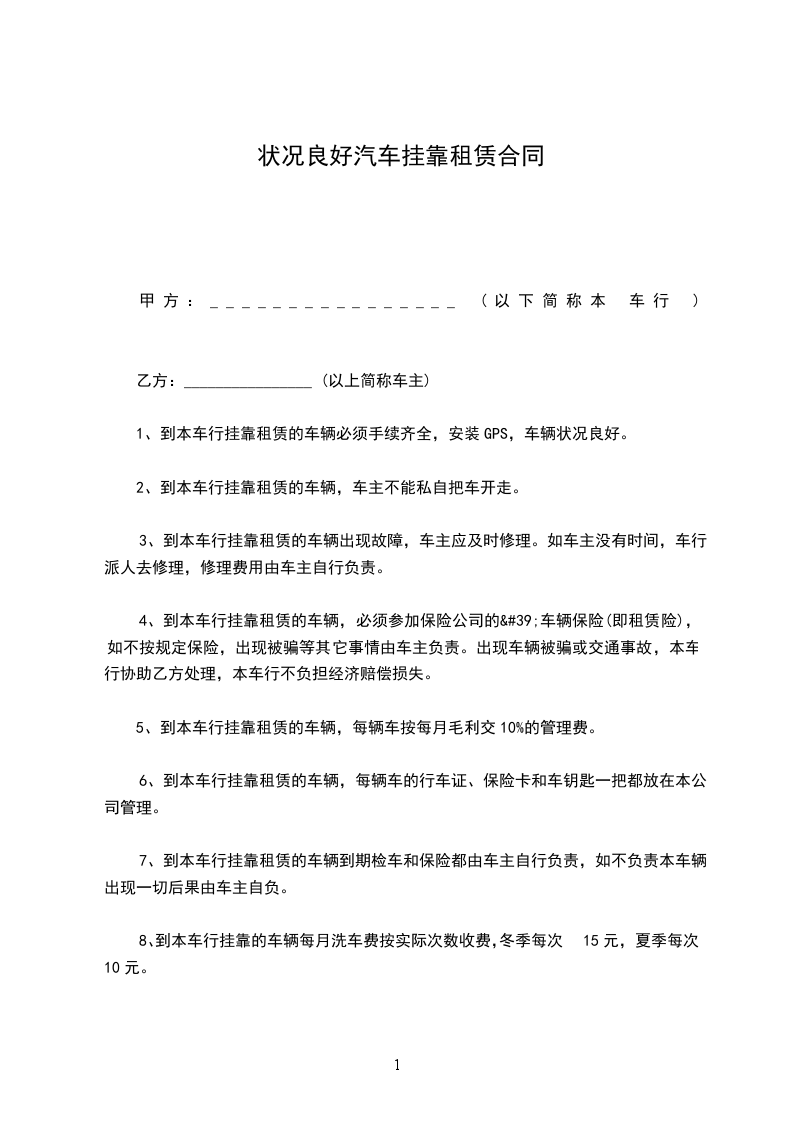 4、想承租方提供性能良好,证件齐全有效的车辆。