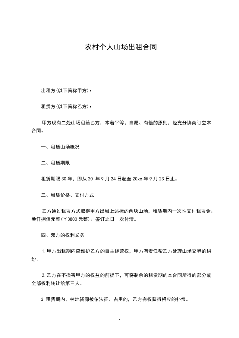 甲方现有二处山场租给乙方,本着平等、自愿、有偿的原则,经充分协商订立本合同。