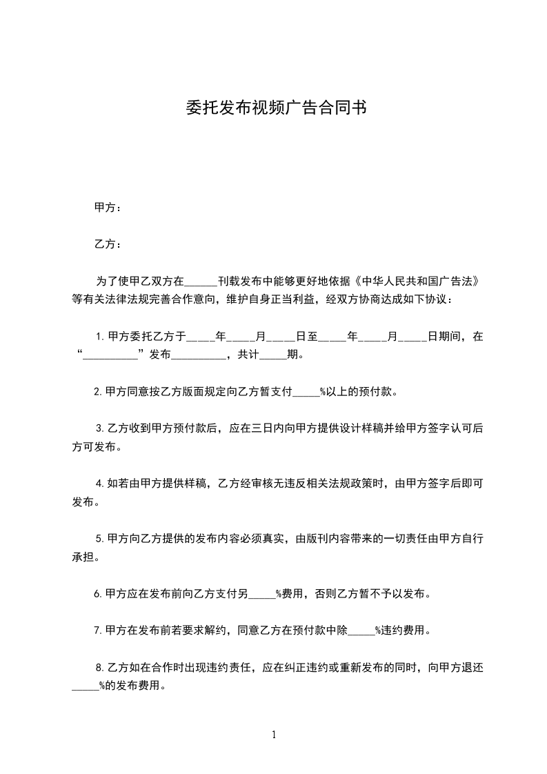 1.甲方委托乙方于_____年_____月_____日至_____年_____月_____日期间,在“__________”发布__________,共计_____期。