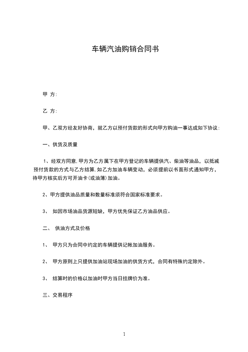 1、经双方同意,甲方为乙方属下在甲方登记的车辆提供汽、柴油等油品,以抵减预付货款的方式与乙方结算,如乙方加油车辆变动,必须提前以书面形式通知甲方,待甲方核实后方可开油卡(或油簿)加油。