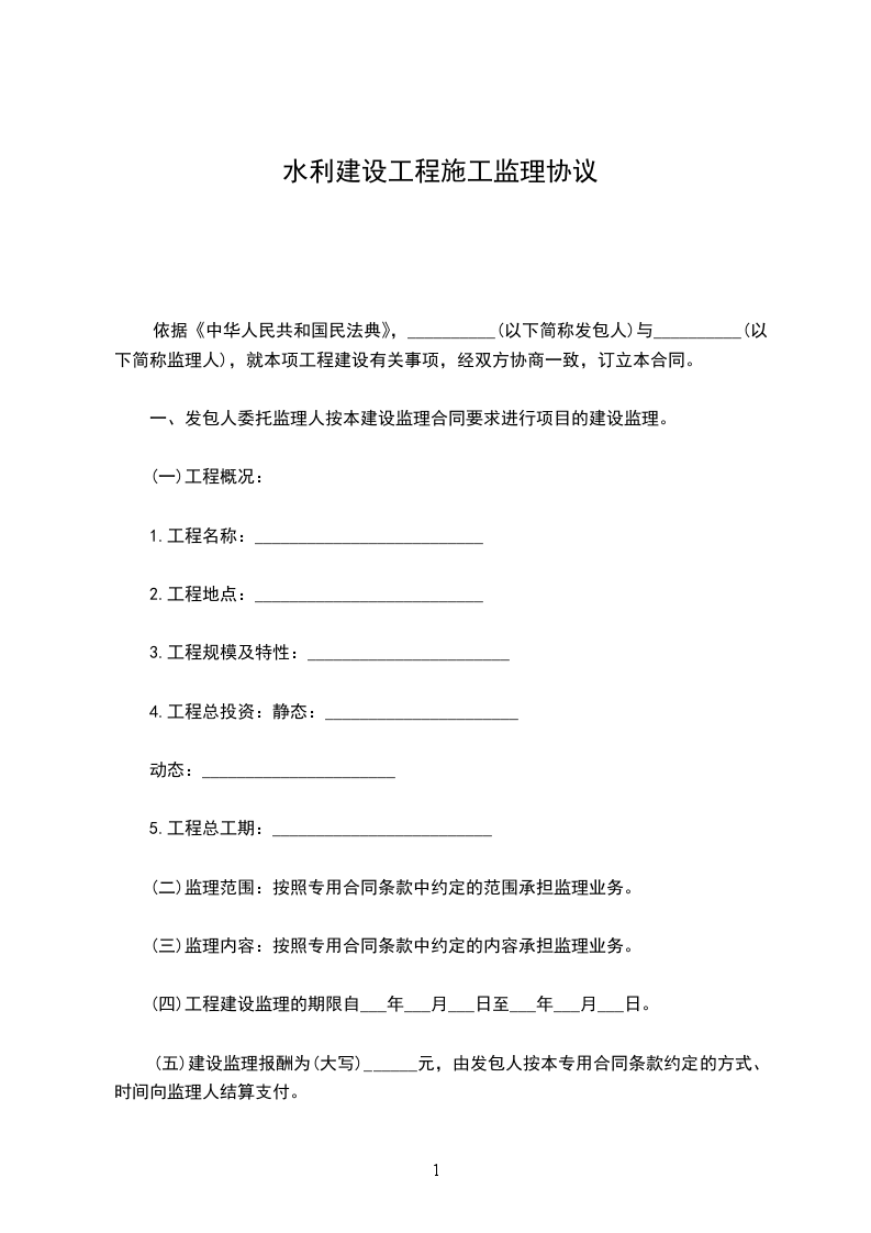 依据《中华人民共和国民法典》,__________(以下简称发包人)与__________(以下简称监理人),就本项工程建设有关事项,经双方协商一致,订立本合同。