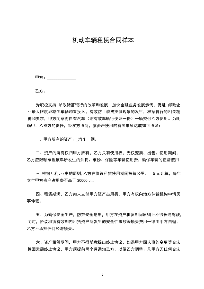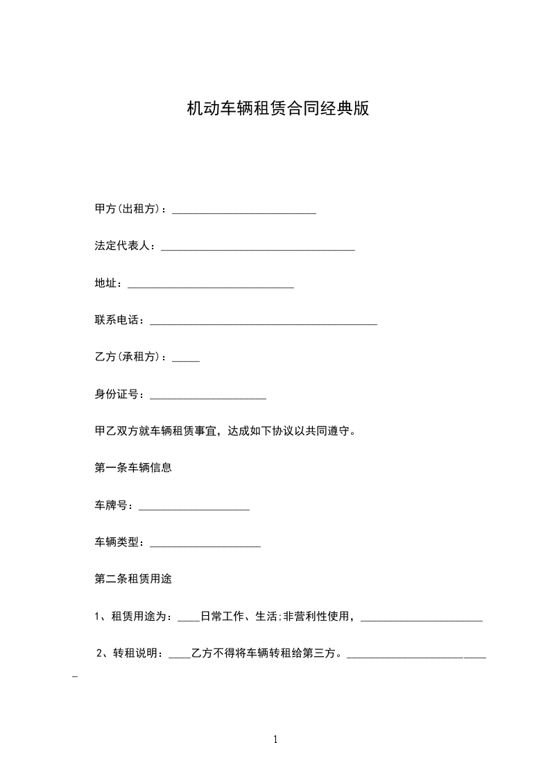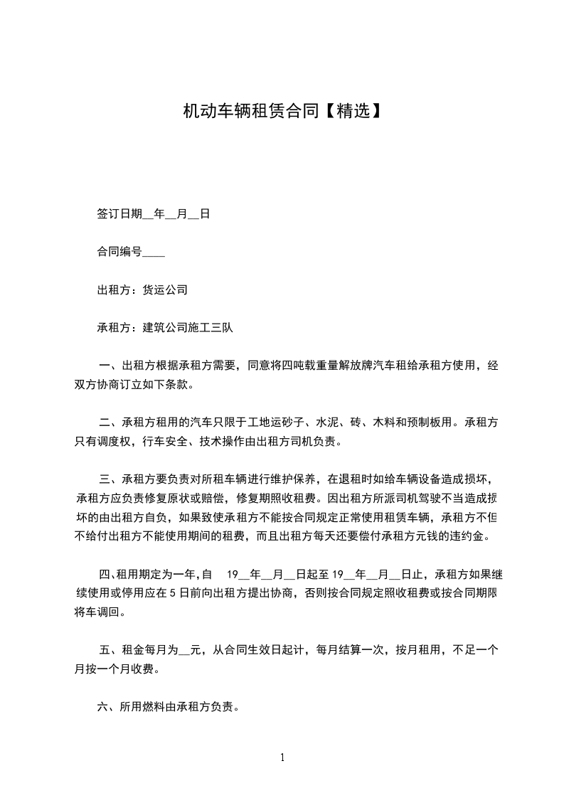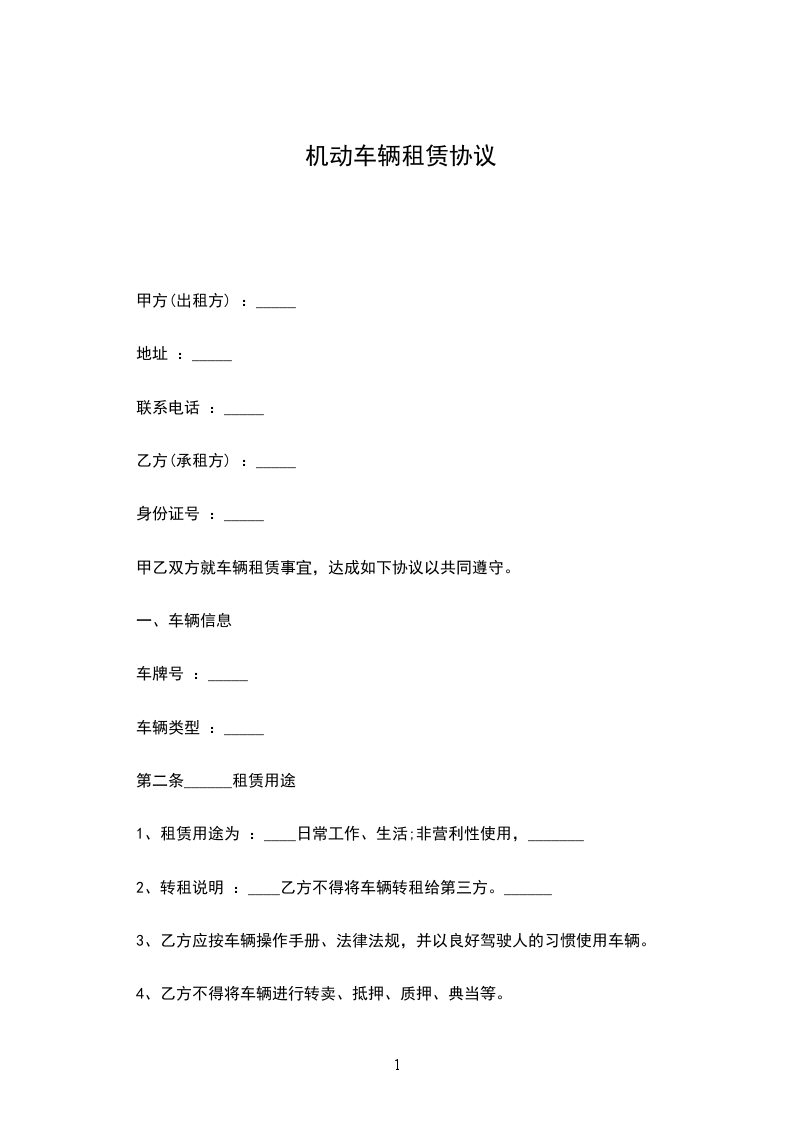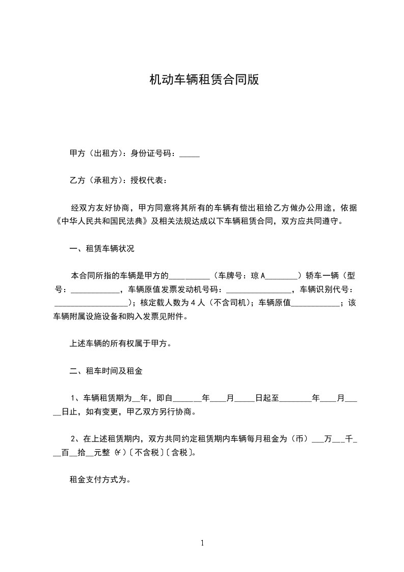 第一条 承租机动车的牌号: