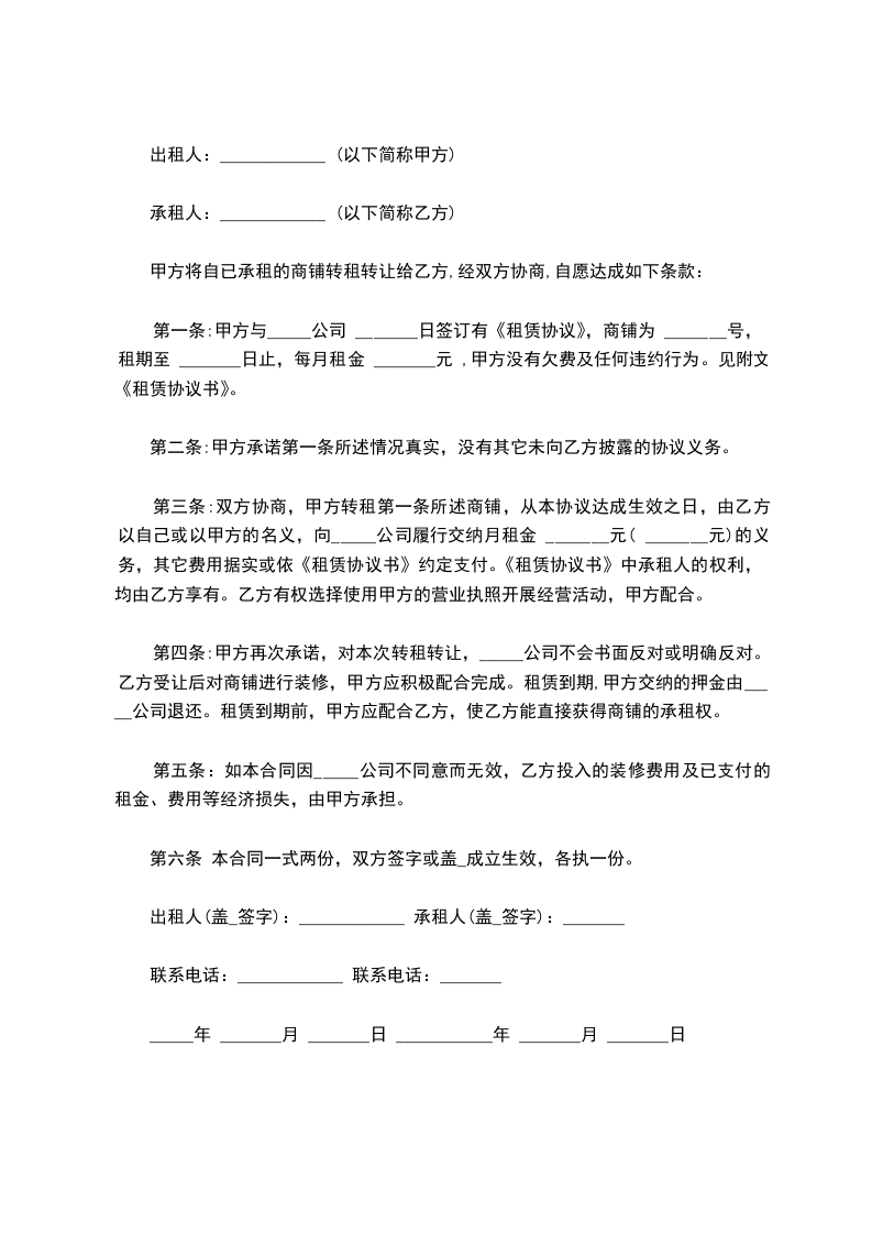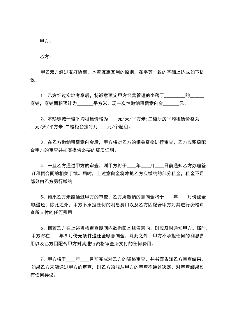一、 甲方自愿将___号商铺出租给乙方使用,乙方已对该商铺做了充分的了解,愿意承租该商铺。