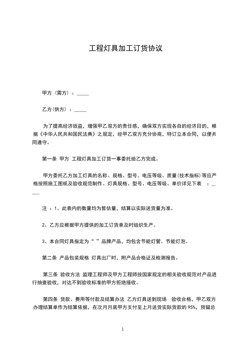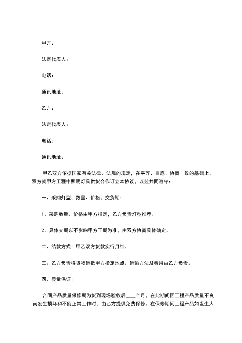 1、在甲方收到乙方定金后,3个工作日内甲方把该协议内所用灯具的LED驱动器送至乙方工地。