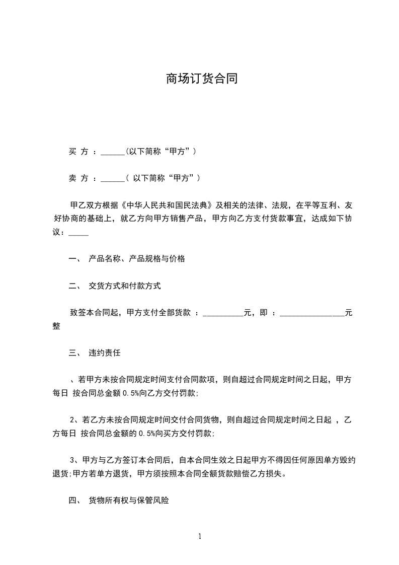 一、甲方将为乙方货一批。
